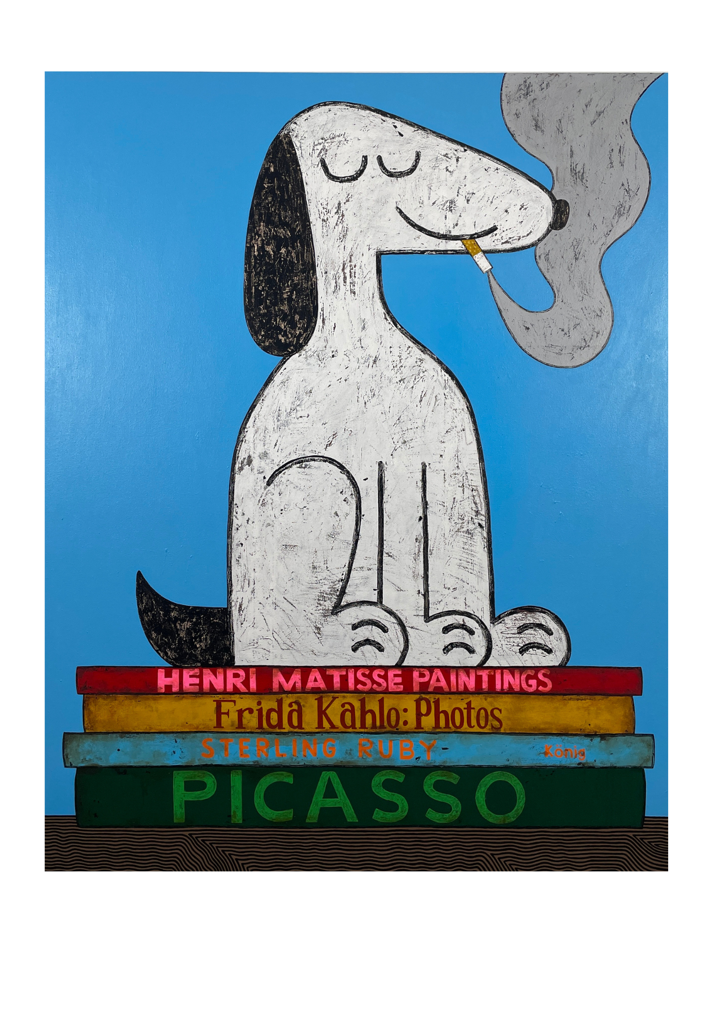 Son style distinctif se caractérise par des compositions audacieuses, souvent marquées par des silhouettes graphiques, des lignes épurées et des palettes de couleurs vives. Edelhuber s’inspire fréquemment d’objets du quotidien, de la culture populaire et de l’histoire de l’art, transformant des symboles familiers en œuvres riches en signification et en nostalgie.