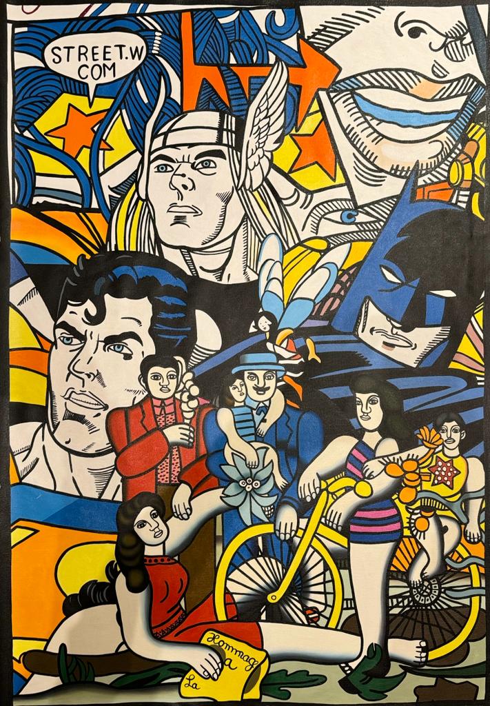 Au cœur de l’œuvre d’Erró se trouve sa passion pour les collages. À travers cet art méticuleux, il combine des images provenant de sources diverses telles que des bandes dessinées, des magazines, des publicités et des œuvres d’art classiques, créant ainsi des compositions visuellement riches et évocatrices. Ces collages révèlent son habileté à manipuler l’imagerie populaire pour interroger les normes sociales et les idéaux culturels, tout en révélant les contradictions de la société contemporaine.